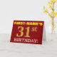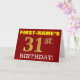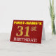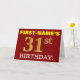 Este design de cartão de saudação de aniversário apresenta uma mensagem como "FIRST-NAME'S 31st BIRTHDAY!", com o "31st" a ter uma aparência falsa/imitada de cor dourada. O nome do destinatário na frente pode ser personalizado, e o fundo frontal é vermelho colorido. Também apresenta uma mensagem de saudação de aniversário personalizável no dentro. Um cartão de aniversário como este talvez pudesse ser dado a alguém em comemoração do seu trigésimo primeiro aniversário. [~Z0000184]