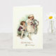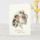 Um belo aniversário de vintage mostrando um menino vitoriano de joelhos para uma linda garota segurando uma coroa de flores. Um cartão vintage para qualquer dama ou garotinha.