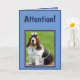 Cartão de aniversário W/Basset no Chapéu & no dog tags do capitão militar