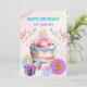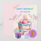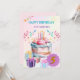 Um lindo cartão de aniversário rosa, retratando montes de guloseimas deliciosas. Faça uma menina muito feliz no seu aniversário especial com este cartão de saudação fofo.