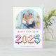 Cartão moderno do ano novo 2025 com balões de folha coloridos com a opção de adicionar sua mensagem personalizada no verso do cartão. Basta adicionar seu texto neste modelo fácil de usar e adornar este cartão com sua foto favorita para torná-lo um cartão de férias único.