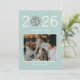 Este Cartão com fotos de Ano Novo apresenta uma foto de solteiro enquadrada em um fundo branco sólido e 2026 em grande número em uma fonte sans serif moderna com o zero transformado em uma bola de disco.