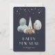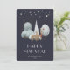 Cartão de Feliz ano novo de aquarela bonito com uma cena de inverno com um pau e um pinto vestindo um cachecol.