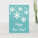 Cartão de Ano Novo Flocos de Neve e Estrelas, Aqua