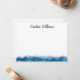 Cartões de nota com borda azul-escura na parte inferior e seu nome na parte superior em uma fonte elegante de script.
