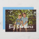 Que bom que esperamos o cartão de anúncio de gravidez fotográfica para os Big Brothers com azul no verso.