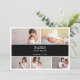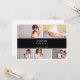 Dê as boas-vindas ao seu milagre mais esperado com estilo com este cartão de anúncio de bebê com foto simples preto e branco. O design apresenta uma colagem de fotos como espaço reservado para ser substituído pela sua. O retângulo escuro elegante na parte superior do modelo deixa espaço suficiente para incluir os nomes do seu pequeno, data de nascimento, local de nascimento, etc.