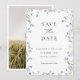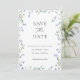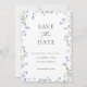 Anuncie seu dia especial com estilo com este cartão "Save the Date" sofisticado, apresentando uma moldura floral azul ilustrada com beleza. O design combina uma paleta de cores azul atemporal com tipografia moderna, criando um sentimento luxuoso e romântico. Adicione sua foto ao verso.