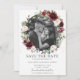 Destaque sua foto pré-casamento com este cartão de anúncio de data de casamento com foto boho chic. Apresentando uma bela aguarela borgonha, rosa suave, floral rosa pálido e grinalda de folhagem verde. Personalize-o com seus detalhes de forma fácil e rápida, basta pressionar o botão personalizar para reorganizar e formatar o estilo e a posição do texto.
