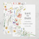 Anuncie a data do seu casamento com este vibrante cartão de anúncio de data de casamento com prado de flores silvestres. Com flores pintadas à mão em aquarela, folhagens suaves e uma estética quente e orgânica, este design é adequado para casamentos de primavera, verão, jardim, prado, rústico e boho. Personalize instantaneamente com seus nomes, data e detalhes. Uma escolha brilhante e alegre para casais que amam a natureza.