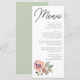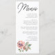 Este cartão de Menu de água-forte floral rosa bege e mauve é o design perfeito para complementar um casamento elegante e sofisticado. Com flores de água-forte de rosa vintage deslumbrantes, em tons de rosa bege, rosa, mauve, pêssego, sálvia, oliva e azul-teal, certamente irá completar o visual que você deseja.