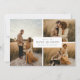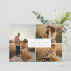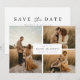 Nosso cartão de data de salvamento apresenta uma grade de fotos deslocada e letras em roteiro moderno para a maneira perfeita de compartilhar suas fotos de noivado e data de casamento com familiares e amigos.