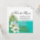 Este lindo cartão de anúncio de Save the Date da nossa coleção "Aloha Beach" apresenta flores tropicais Moonflowers aninhadas em folhas de palmeira contra um lindo cenário oceânico. Use o botão PERSONALIZAR para adicionar texto. Vários produtos compatíveis disponíveis. Para perguntas ou pedidos personalizados, envie um e-mail: cheryl@cheryldanelsart.com. Design "Aloha Beach" por Cheryl Daniels © 2014.