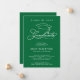 Um boné de formatura, a palavra "graduado", e seus detalhes em letras brancas elegantes em convites de anúncios verdes são uma maneira linda de contar aos amigos e familiares sobre sua formatura. *Itens CORRESPONDENTES e MAIS cores feitas para você em nossa coleção.