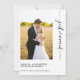 cartão com fotos de casamento recem casados. Apresentando uma bela caligrafia moderna com pestanas e uma mensagem personalizada no verso para mais detalhes. Kimberly Brett.