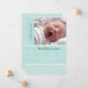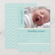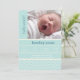 Personalize este cartão de nascimento moderno e chic com a fotografia e os detalhes do seu bebê. A placa apresenta um padrão de gavão azul.