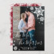 Quanto mais os cartões de anúncio de gravidez do natal de fotos mais alegres. Esperando pais! Linda mão branca moderna escreveu tipografia "quanto mais alegre!" cartão de script para compartilhar suas boas notícias com a família e os amigos. Apresenta um script branco manuscrito, sobreposição de flocos de neve e foto de cheio. Você pode personalizar o design substituindo o texto e a foto do exemplo. #3343 Se precisar de ajuda ou itens correspondentes, entre em contato comigo!