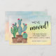 Diga à família e aos amigos que se mudou para sua nova casa no Sudoeste, ou qualquer lugar no deserto. Este pequeno cartão de anúncio em movimento apresenta cactos de aquarela e um fundo colorido com tipografia de na moda. Facilmente personalizável. Original Watercolor © Michele Davies.