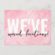 Um anúncio divertido e na moda para que seus clientes, fornecedores e amigos saibam que você tem uma mudança de endereço. Adicione seu logotipo para torná-lo seu. Um postal simples e divertido para marcas corporativas, pequenas empresas ou indivíduos como artistas de maquiagem, estéticos, cabeleireiros e muito mais! Se você é um indivíduo, você pode mudar o 'nós' para 'Eu tenho'. Agora é uma coloração rosa, preta e branca, mas você pode trocar qualquer uma das cores para o que quiser usar! O padrão de aquarela branca ficará sobrecarregado sobre a cor que você escolher para o plano de fundo. Uma mistura de tipografia moderna e escrita para um olhar profissional, mas chique. Cartão-postal de mudança de endereço comercial