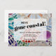 Este cartão de anúncio de mudança costeira exclusivo é decorado com um mosaico de conchas.