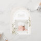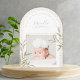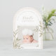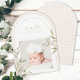 Celebre a chegada da sua pequena bênção com este Cartão de Anúncio de Nascimento elegante e inspirado na fé. Com um fundo gingham neutro suave, uma moldura de arco delicada e a preciosa foto do seu bebé, este design atemporal é perfeito para partilhar a sua notícia alegre com os entes queridos.