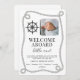 Este anúncio de nascimento de um tema náutico bonito apresenta a frase "Bem-vindo a bordo, Pequeno Um!". Personalize com uma foto e todos os detalhes do bebê. Com sotaques inspirados no mar, é uma maneira doce e na moda para compartilhar a chegada do seu bebê com amigos e familiares. Perfeito para proprietários de barcos, berçários à beira-mar e qualquer um que goste de um design de inspiração oceânica!