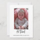 Celebre a chegada do seu pequeno pacote de alegria com este Cartão de Anúncio de Nascimento da Rapariga de Foto. Este design apresenta um layout de foto em tamanho de cheio para destacar uma imagem apreciada de seu recém-nascido, enquadrado com tons suaves e sotaques delicados, perfeito para uma menina. Personalize com seu nome, data de nascimento, peso e comprimento para compartilhar sua alegria com a família e os amigos. Ideal para criar uma guarita que os entes queridos vão tesourar para sempre. Elegante, eterno e sincero — esta carta é uma bela maneira de anunciar seu mais novo membro da família.
