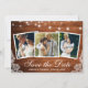 Cartão de Anúncio de Noivado com Luzes de Madeira