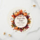 Celebre seu próximo casamento com um estilo outonal aconchegante com este cartão circular rústico de Save the Date. Com destaque para abóboras vibrantes em aquarela, folhas de outono, frutos e bolotas em tons quentes da estação, este design captura perfeitamente o charme da colheita de outono. O layout circular emoldura os detalhes do seu casamento no centro, tornando-o elegante e memorável. Ideal para casamentos rústicos, celebrações em celeiros e festas de jardim de outono. Uma escolha linda para casais que amam as cores ricas e a beleza natural do outono.