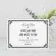 Personalize este design de Cartão de Anúncio de Noivado com Moldura Retro Art Déco, totalmente personalizável e definido como um modelo para sua fácil personalização. O mesmo design de Convite de Casamento, Cartão de RSVP e Cartão de Inserção estão listados abaixo.