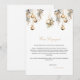 Este cartão de anúncio de noivado natalino com tema floral e ornamental de inverno apresenta um fundo branco simples, flores e folhagens aquareladas festivas, enfeites dourados de Natal e um modelo de casamento elegante que é fácil de personalizar.