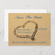 Elegante cartão de anúncio de salvamento de data, com uma fotografia da praia, com um coração desenhado na areia. Personalize este anúncio para o seu casamento.