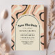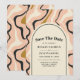 O cartão "Retro Swirl Arch Save The Date Card" combina magistralmente tons de rosa, preto, dourado e creme, criando um anúncio visualmente impressionante para o seu dia especial. As espirais retrô lhe dão um charme caprichoso e atemporal, enquanto os detalhes dourados adicionam um toque de elegância e celebração. Incluído em um design de arco, o cartão convida calorosamente os convidados a reservar a data para o seu casamento, oferecendo uma prévia do evento sofisticado e elegante que está por vir.