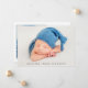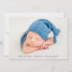 Anuncie a chegada do seu bebê com nosso simples anúncio de nascimento, apresentando uma foto horizontal do seu pequeno com seu primeiro nome maravilhosamente sobreposto em cinzas sans serif font. Você pode personalizar o anúncio com o meio e sobrenome do seu bebê. No verso, há espaço para uma fotografia adicional, juntamente com as estatísticas de natalidade e uma mensagem pessoal.
