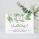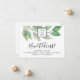 Este cartão de anúncio de mudança é decorado com greenery minimalista em aquarela, tipografia de roteiro elegante e espaço para o seu logotipo. Facilmente personalizável. Aquarela Original © Michele Davies.