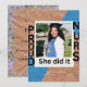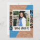 Celebre seu orgulhoso momento de graduação com este elegante design de cartão de foto de graduação “Ela Fez Isso”. Perfeito para graduados de enfermagem e celebrações da Turma de 2026, este layout moderno apresenta uma declaração ousada com um destaque de foto pessoal. Ideal para anúncios, convites de festa ou cartões de recordação. Disponível em 4 belas variações de cores para combinar com seu estilo único.