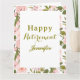 Celebre um marco bem merecido com este cartão de Aposentadoria Feliz personalizado com flores cor-de-rosa e folhagens!