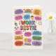 Celebre seu colega de trabalho favorito com este vibrante e divertido cartão de "Melhor Amigo do Trabalho"! Com letras coloridas desenhadas à mão e frases divertidas como "Alma gêmea do escritório", "Sobrevivente de reuniões", "Campeão de corridas para pegar café" e "Lenda do intervalo para almoço", este cartão é perfeito para mostrar apreço ao colega que torna os dias de trabalho melhores. Seja para um aniversário, aniversário de trabalho, presente de agradecimento ou simplesmente porque sim, este design alegre captura o vínculo especial entre amigos do trabalho. A mistura caprichosa de cores vibrantes, corações, estrelas e elogios divertidos torna este cartão ideal para o seu vizinho de mesa, parceiro de escritório ou parceiro profissional de crimes!