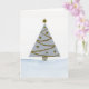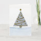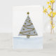 Cartão de Natal de aquarela pintado à mão com árvore de Natal prateada e dourada.