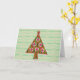Minha obra de arte original está presente neste belo cartão de Natal, consistindo em uma Árvore de Natal em estilo de arte gráfica projetada com um estilo retrô em tons de verde e rosa, posta sobre um fundo com um padrão de listras vintage com um leve visual desgastado, o que torna um cartão bonito e festivo. O interior do cartão diz "Que o seu Natal seja decorado com alegria e cheio de amor. Tenha um feriado maravilhoso e um Ano Novo!" para uma saudação de Natal simples e sincera para qualquer pessoa.