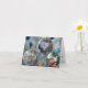 Um grande Natal requer um grande cartão de Natal. Traga suas fotos e encontre 3 para preencher os enfeites pendurados nesta árvore de Natal clássica de alumínio com flocos de neve. Em seguida, termine com uma foto da família no interior deste cartão de felicitações orientado horizontalmente. Você pode personalizar sua mensagem e lembre-se de adicionar uma assinatura (porque ninguém quer ter a síndrome do túnel do carpo). Há 2 modelos de fotos de bolas prateadas e 1 azul na frente. Vários outros enfeites estão na árvore, incluindo um do próprio Papai Noel.