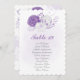 placa de número de tabela botânica romântica romântica de flores brancas e roxas. Os detalhes de brilho são simulados.