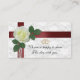 Casa ou cartão de assento, rosa branca com fita vermelha e pérolas em fundo de renda, totalmente personalizável para sua ocasião