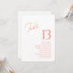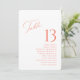 Eleve o seu décor de casamento com este cartão duplo-sided elegante. Com um número de mesa em negrito na frente e nomes de convidados no verso, é perfeito para organizar assentos com elegância e facilidade. O design moderno de roteiro coral e serifa adiciona um toque refinado, tornando-o ideal para casamentos, recepções ou eventos formais. Personalize ambos os lados para combinar com o estilo do seu dia especial.