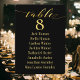 Fonte preta com floreios de caligrafia contra papel branco crocante para cartões de mesa de assentos.