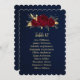 romântico burgundy, flores vermelhas escuras e ouro, deixa marinho cartão azul de assento. Os detalhes de brilho são simulados