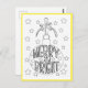 Tipografia "Alegre e Brilhante" para página de colorir dentro de um enfeite pendurado, com estrelas ao redor. Pode ser enviado por correio ou pendurado como arte na parede ou geladeira. Ótima atividade de entretenimento para crianças como lembrancinhas de festa, professores para atividade dos alunos, ou enviando para os avós da criança. Este cartão tem uma borda amarela brilhante.