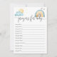 Permita que os convidados da sua festa de baby shower tenham a oportunidade de orar pelo pequeno com um Cartão de Atividade de Orações pelo Bebê. Os convidados podem preencher este cartão boho sunshine e deixar pensamentos doces que os futuros pais podem ler e guardar com carinho mais tarde.