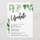 A distinção desta suíte se deve à fonte de script escrita manual em negrito e casual usada para frases de destaque acentuadas em elementos verdes casuais de cor d'água.Se você está na posição de precisar informar seus convidados de casamento que você teve que mudar seu grande encontro, aqui está uma opção ousada. Nesta peça, a fonte de script com letra manuscrita foi usada para criar um gráfico simples que mostrava a palavra "Atualizar". Use os campos modelo para adicionar seus detalhes pessoais e tornar este design moderno seu próprio. O fundo branco pode ser alterado para qualquer cor que você preferir. Todas as camadas foram adicionadas separadamente e desbloqueadas para oferecer a você a maior quantidade de controle de design. Atenda a quaisquer solicitações especiais ou para personalizar a assistência. // 105 //