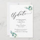Se os planos do seu casamento mudaram inevitavelmente, este cartão simples e elegante pode ser a opção perfeita para você. Com uma fonte de caligrafia luxuosa, o cabeçalho lê "Atualização". Tudo o mais é versátil e pode ser editado: altere a fonte de apoio ou as cores. Os cantos são acentuados com raminhos de folhas de eucalipto aquarela. Use os campos do modelo para adicionar seus detalhes pessoais. // 137 //